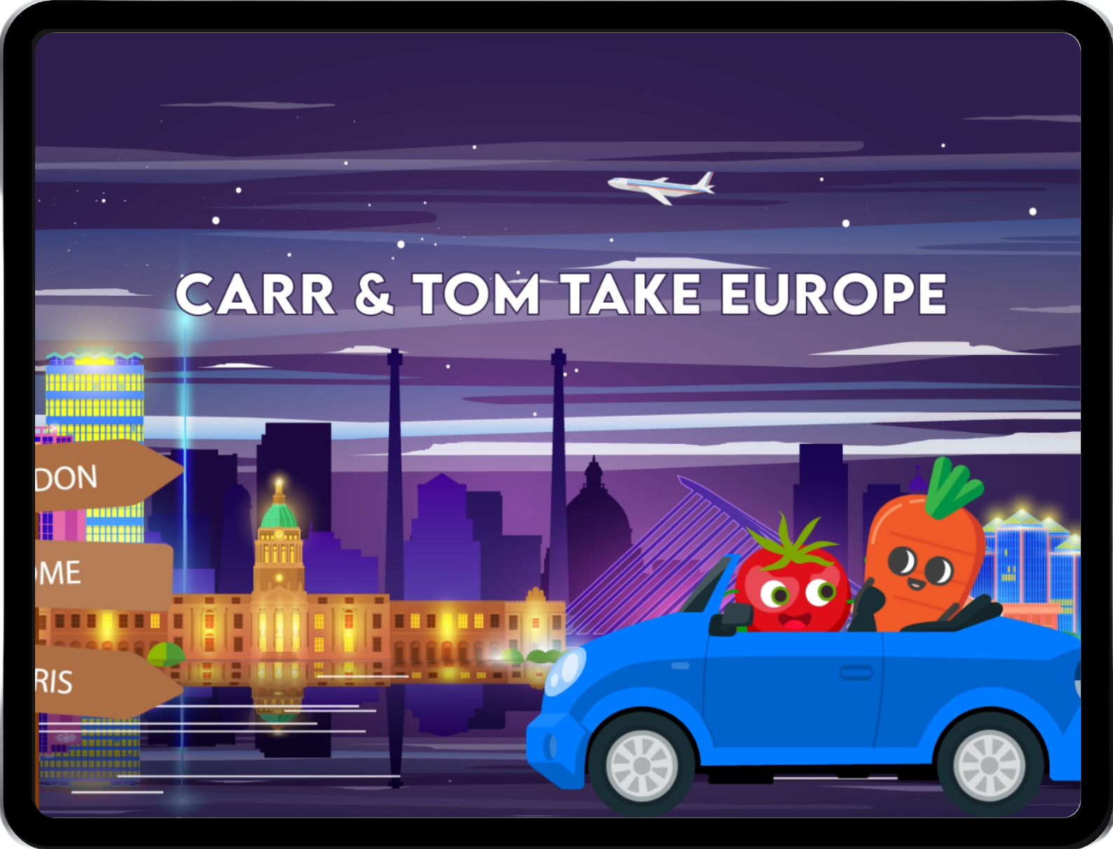 An adventurous carrot, Carr, convinces his friend Tom the tomato to escape their fate as food and travel across Europe. The story blends Carr’s vivid imagination with playful scenes of friendship and exploration.